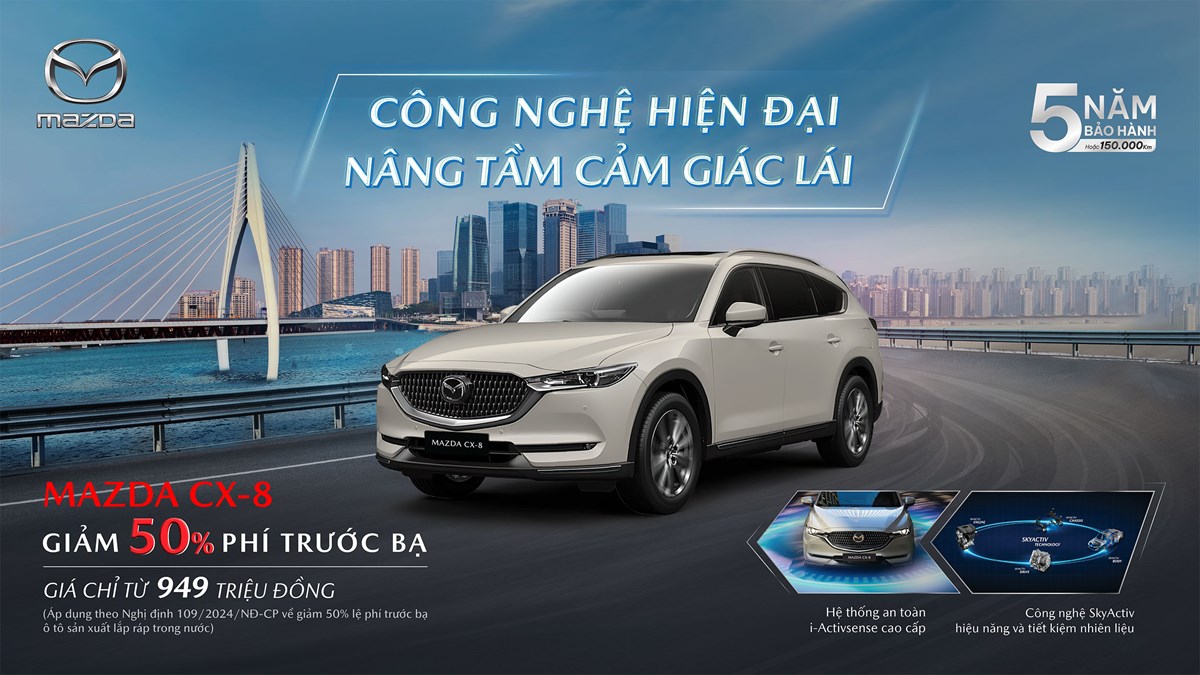 Tại Việt Nam, Mazda là thương hiệu luôn đứng đầu trong danh sách lựa chọn của nhiều khách hàng khi tìm mua ô tô nhờ đáp ứng đầy đủ nhu cầu sử dụng với sự đa dạng mẫu xe, sắc màu cao cấp, độ tin cậy của thương hiệu Nhật Bản. Tính chung 8 tháng năm 2024 đã có hơn 17.000 xe Mazda đến tay khách hàng, trong đó CX-5 và Mazda3 liên tiếp nằm trong top xe bán chạy nhất toàn thị trường. Tháng 9, Mazda tiếp tục mang đến cơ hội tốt cho khách hàng đang mong muốn sở hữu xe phục nhu cầu di chuyển tăng cao dịp cuối năm. Theo đó, cùng với chính sách giảm 50% phí trước bạ cho xe Mazda3, Mazda6, CX-5 và CX-8; Mazda Việt Nam cũng áp dụng ưu đãi đặc biệt cho các mẫu CBU, cụ thể Mazda2 và CX-3 ưu đãi giá tương đương 50% phí trước bạ, riêng Mazda CX-30 ưu đãi giá 10 triệu đồng.