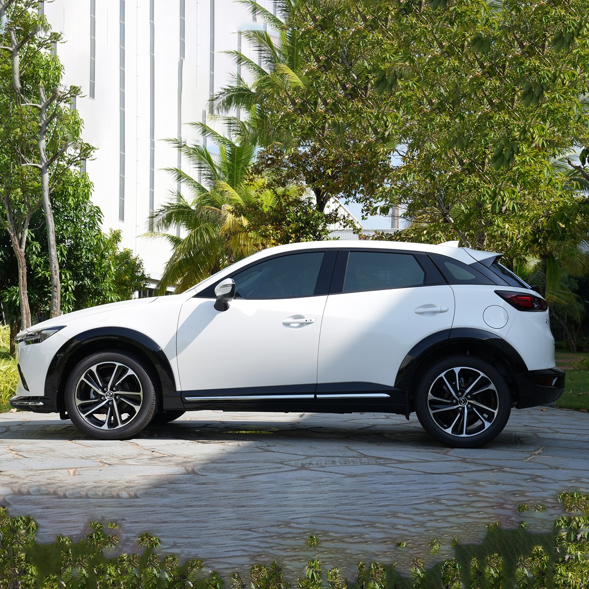 Mazda CX-3 ưu đãi tương đương 50% phí trước bạ cho tất cả các phiên bản. Trong đó, phiên bản Premium ưu đãi cao nhất 33 triệu, giá bán mới là 631 triệu. Các phiên bản còn lại AT, Deluxe và Luxury có mức ưu đãi từ 27-30 triệu đồng. Giá bán sau ưu đãi của CX-3 chỉ từ 512 triệu, tốt nhất phân khúc. CX-3 đang được nhiều khách hàng mua xe lần đầu lựa chọn nhờ sự kết hợp hài hòa giữa phong cách thiết năng động của một chiếc SUV, cùng trải nghiệm lái thú vị và linh hoạt của một chiếc Sedan.